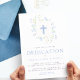 Invitation Bébé Blue Floral Wreath & Cross Baby Dedication