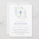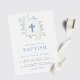 Invitation Bébé Blue Floral Wreath & Cross Baptism