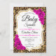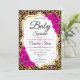 Invitation à saupoudrer bébé. Design élégant rose et blanc avec parties scintillant en or et empreinte de léopard. Comprend une police de script branchée et des roses roses chauds. Parfait pour un Baby shower design. Invitations Zazzle imprimées ou téléchargement instantané modèle imprimable numérique.