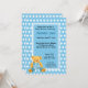 Invitations de douche pour bébé pour les garçons avec le coeur bleu arrière - plan et un ours en peluche doux dans le coin. Customisez avec les détails de votre fête.