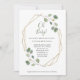 Ces minimaliste et invitation à la mode de baby shower comporte le feuille et le feuillage verts simples d'eucalyptus d'aquarelle sur un cadre central géométrique d'or de faux, avec le manuscrit manuscrit qui indique "oh le bébé !"