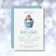 Bébé, il fait froid dehors. Invitation baby shower garçon d'hiver en bleu avec un cupcake et une jolie illustration de manchot. Personnalisez-le avec vos informations de partie, les noms de registre et les informations RSVP.