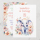 Un petit éléphant doux entouré de fleurs roses et coralliennes aquarelle illustration d'anniversaire invitations pour une petite fille.