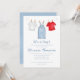 Invitation Bébé mignon Garçon Whimsical Denim Blue Clotheslin