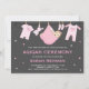 Éblouissez vos invités avec ce mignon invitation Aqiqah avec une adorable petite fille avec des vêtements mignons contre un arrière - plan gris. Ajoutez simplement les détails de votre événement sur ce modèle facile à utiliser pour en faire une invitation unique. Retournez la carte pour révéler un élégant motif à rayures rose et gris au dos de la carte.