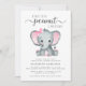 Une invitation à la douche virtuelle pour petite fille mignonne avec "A Sweet Little Peanut Is On Her Way" écrite dans un mélange de typographie moderne gris doux et un script élégant, et une aquarelle rose pastel d'un bébé éléphant. Ajoutez le nom de la mère et les détails de la douche virtuelle dans une simple typographie grise.