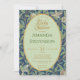 Cette invitation pour une baby shower bleu-vert est neutre en termes de sexe, elle peut être utilisée à la fois pour un garçon et pour une fille. Le texte est écrit dans un ovale vert clair, avec une bordure dorée, avec des lettres dorées, sauf le nom, qui est vert. L'occasion "Baby Shower" est écrite dans un script calligraphique, le reste en majuscules.