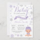 Bébé Son Froid Hors Hiver Fille Baby shower Invitation. Invitation Baby shower fille. Invitation Baby shower de vacances d'hiver. Pneus violets et gris. Fond blanc. Pour plus de personnalisation, cliquez sur le bouton "Customiser" et utilisez notre outil de conception pour modifier ce modèle.