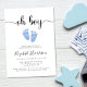 Petit garçon mignon et simple saupoudrer l'invitation avec "oh garçon" dans un script élégant avec des swashes et une aquarelle bleu pastel de pieds bébé. En dessous, vous pouvez facilement personnaliser les détails de la fête.