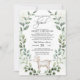 Célébrez l'arrivée prochaine de votre petit agneau avec cette élégante invitation "baby shower par la poste". Le design présente une belle couronne de verdure aquarelle peinte à la main et un mignon mouton.