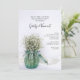 Invités Invitations à un rassemblement avant le mariage en l'honneur de la mariée et de la salle de jeu d'être avec la belle respiration de bébé blanc dans Blue Jar Vase Engagement Party Invitation. Cet élégant invitation d'évènements fleuris sur mesure présente une photo florale pittoresque d'un vase en verre bleu chic et rustique rempli de fleurs brunes blanches sur la tige avec du satin blanc. Idéal pour le couple qui planifie une fête de jardin.