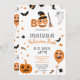 Adorable joli Boo Halloween illustrations enfants fête, parfait Halloween fête, avec de jolies illustrations avec fantômes et boo beignets peints avec casquettes sorcières, balai, blanc mignon fantôme, citrouille sculpté, ballon, araignée et chauves-souris. Une adorable illustration d'Halloween.