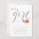Jolie baleine corail océanique typographie bébé douche fille. Il contient le texte "Petite fille" et une petite baleine à pêche corallienne avec le coeur. Le dos comprend un motif de baleines.