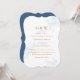 Faire-part de mariage d'impression florale bleu muet simple et élégante avec texte couleur or sur un arrière - plan blanc et un fond bleu solide de la carte. Veuillez consulter cette collection chic de mariages pour la coordination des accessoires d'expédition.