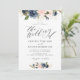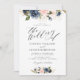 Un design élégant avec du lettrage en noir, du bleu marine et des fleurs d'aquarelle rougissantes.