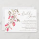 Invitations de douche nuptiale à la mode rustique avec une branche de fleurs d'aquarelle rose en fleurs et motif rayé blanc et gris sur les revers de la carte. Ces invitations sont parfaits pour un pays, une ferme, une fête de jardin, un baryton ou un wedding shower de style.