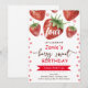 OEuvre florale d'aquarelle de fraise amusante. Fraises et fleurs ! Police de script douce. Thème d'anniversaire de la fraise douce aux baies roses pour enfants. Facile à personnaliser. Aussi disponible en téléchargement numérique! Printemps, fêtes d'été