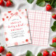 Célébrez votre petit bonbon avec cette Berry 1st Birthday Strawberry Invitation! Doté de fraises rouges ludiques, d'un arc rose et d'un script plein de charme, ce design est parfait pour une célébration sur le thème des baies. Idéal pour les fêtes en plein air, les rassemblements dans le jardin ou les amusement d'été, il ajoute une touche fruitée et féminine au premier anniversaire de votre fille. Customisez avec les détails de votre fête et envoyez un accueil juteux à vos amis et votre famille pour une journée pleine de sourires et de douceur.