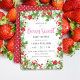 Un bébé sucré aux baies est en route ! Il s'agit d'une mignonne invitation à baby shower à base de fraises avec un cadre de fraises, fleurs blanches et verdure. Il est complété par une typographie de style d'écriture amusante et un côté inverse de graines de fraise sucrée. Parfait pour un bébé et des fêtes du printemps à l'été.