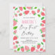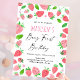 Cette adorable invitation présente des fraises et de la verdure peintes à la main.