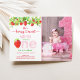 Cette adorable invitation présente des fraises aquarelles, de la verdure et des fleurs.