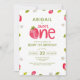 Fraise Berry First Birthday Invitation pour bébé fille en train de devenir doux ONE. fraises d'aquarelle, accents floraux feuille et blancs. Berry invitation de 1er anniversaire.