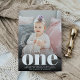 Des invitations photo élégantes et joyeuses pour le premier anniversaire de votre petit, avec une photo pleine verticale ou portrait orientée avec "[nom] est en train de tourner un" superposé en bas dans une combinaison chic de script manuscrit et de typographie de bloc. Personnalisez avec les détails de votre fête en dessous.