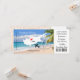 Une faire-part de mariage amusante mais élégante dans un style carte d'embarquement/billet pour les couples se mariant à l'étranger dans la belle île de Chypre qui est montré dans une silhouette carte blanche sur une scène générique de plage et de palmier, avec coeur d'amour rouge sucré, silhouette plane et forme de coeur tourbillonnant blanc. Le verso de la carte d'embarquement comporte un motif en dentelle assez élégant.