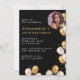 Invitation Black 20e anniversaire Gold Balloon Photo calligraphie typographie féminine jalon classique élégant glam