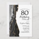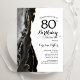 Gate noir, blanc et or 80e anniversaire invitation fête. Design élégant et moderne avec aquarelle agate marbre arrière - plan, fausse parties scintillant or et typographie script de police. Carte invitation branchée parfaite pour une célébration anniversaire féminine élégante. Invitations Zazzle imprimées ou téléchargement instantané modèle imprimable numérique.