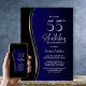 Invitation vos amis et proches avec cette invitation moderne de fête de 55e anniversaire en noir et bleu. La zone de texte personnalisable de ce modèle d'invitation vous permet d'inclure sans effort tous les détails nécessaires à votre fête d'anniversaire, y compris la date, l'heure, le lieu et les informations RSVP. Une variété de types de papier et de styles d'angle sont disponibles pour vos invitations uniques, ainsi que l'option de téléchargement si vous préférez un format numérique.