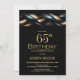 Invitation Black Blue Gold 65e fête d'anniversaire