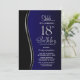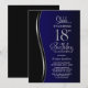 Invitation vos amis et proches avec cette invitation de fête de 18ème anniversaire noir et bleu moderne surprise. La zone de texte personnalisable de ce modèle d'invitation vous permet d'inclure sans effort tous les détails nécessaires à votre fête d'anniversaire, y compris la date, l'heure, le lieu et les informations RSVP. Une variété de types de papier et de styles d'angle sont disponibles pour vos invitations uniques, ainsi que l'option de téléchargement si vous préférez un format numérique.