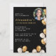 Black invitation 11e anniversaire Gold Balloon Photo calligraphie typographie jalon classique élégant