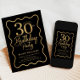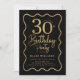 Black gold 30th birthday party invitation. Trendy modern design, perfect for a stylish men's or women's bday celebration. Features wavy border and script font. Customize with your own details. Message me if you need custom age. Printed Zazzle invitations or instant download digital printable template.