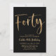Forty Black et Faux Gold Birthday Invitation avec une police de script moderne. Une invitation simple et amusante pour votre fête d'anniversaire de 40 ans.