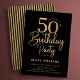 Black gold 50th birthday party invitation. Trendy modern design, perfect for a stylish men's or women's bday celebration. Features script font and stripes on the back. Customize with your own details. Printed Zazzle invitations or instant download digital printable template.