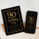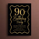 Black gold 90th birthday party invitation. Trendy modern design, perfect for a stylish men's or women's bday celebration. Features wavy border and script font. Customize with your own details. Message me if you need custom age. Printed Zazzle invitations or instant download digital printable template.