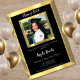 Invitation à la fête de remise de diplômes en noir et or biseauté avec photo. Personnalisez-le en ajoutant une photo d'étudiant et les détails de la fête de remise de diplômes. Convient à la fois aux niveaux secondaire et collégial.