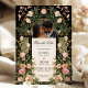 Annoncez votre journée spéciale avec une touche de romantisme et de sophistication grâce à cette incroyable invitation à économiser la date. Ce design présente une palette de couleurs noir et or intemporelle accentuée par des fleurs roses luxuriantes et la verdure, créant un look élégant et captivant. J'ai inclus un cadre circulaire dans le design pour présenter une photo spéciale de vous et de votre partenaire, en transformant ceci en plus qu'une simple sauvegarde de la date - c'est un souvenir que vous et vos invités apprécierez. Que votre mariage soit formel, vintage ou romantique, vous pouvez facilement faire de ce modèle votre propre en customisant les détails et en expérimentant avec différentes photos.
