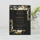 Invitation Black Gold Floral String Lights QR Code Mariage