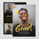 Script de brosse moderne Graduation Faire-part avec 4 photos en noir et or, simple et unique. Personnalisez-le avec vos propres photos et informations sur les grandes fêtes.