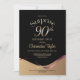 Cette invitation à la fête du 90ème anniversaire, qui surprend par le noir et l'or, est composée d'un jeu de couleurs noir et or, séparé par une vague fluide et un ruban rose élégant qui coule d'un côté à l'autre. La zone de texte personnalisable vous permet d'inclure sans effort tous les détails nécessaires à la célébration de votre anniversaire spécial, y compris la date, l'heure, le lieu et les informations RSVP. Que vous planifiez un rassemblement ou une grande aventure pour votre invité d'honneur, cette invitation contemporaine vous impressionnera.