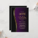 Invitation vos amis et les proches avec cette invitation moderne de fête d'anniversaire noir, or et violet. La zone de texte personnalisable de ce modèle d'invitation vous permet d'inclure sans effort tous les détails nécessaires à votre fête d'anniversaire, y compris la date, l'heure, le lieu et les informations RSVP. Une variété de types de papier et de styles d'angle sont disponibles pour vos invitations uniques, ainsi que l'option de téléchargement si vous préférez un format numérique.