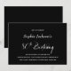 Invitation vos amis et les proches avec cette invitation de fête noire moderne de 80e anniversaire. La zone de texte personnalisable de ce modèle d'invitation vous permet d'inclure sans effort tous les détails nécessaires à votre fête d'anniversaire, y compris la date, l'heure, le lieu et les informations RSVP. Une variété de types de papier et de styles d'angle sont disponibles pour vos invitations uniques, ainsi que l'option de téléchargement si vous préférez un format numérique.