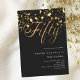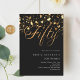 Une invitation moderne et élégante pour une fête du 50e anniversaire pour lui et elle. Décoré d'étoiles dorées. Arrière - plan noir et le mot Cinquante écrit avec de grandes lettres en faux or. Personnalisez et ajoutez un nom et des détails du parti.