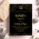 Un arrière - plan noir décoré d'étoiles faux or et d'un casquette. Personnalisez et ajoutez un nom et des détails du parti. Le texte Graduation et le nom sont écrits avec un script de style à la main moderne.