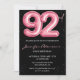 Invitation Black Pink Balloon Glam 92e anniversaire