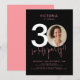 Invitation moderne Black Pink 30th Birthday. Marquez votre jalon dans le style avec ce design moderne et simple, accentué de touches douces de rose pour un look sophistiqué. Ajoutez votre photo personnalisée pour créer une pièce personnalisée qui reflète parfaitement votre célébration. La disposition minimaliste assure que votre moment spécial occupe le devant de la scène tout en conservant un charme intemporel. Idéal pour les invitations, les réceptions ou la décoration de fête, ce design allie élégance et touche personnelle, ce qui en fait un lieu idéal pour célébrer les jalons de la vie avec chaleur et charme.