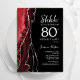 Gate rouge, noir et argent surprise 80e anniversaire invitation fête. Design élégant et moderne avec aquarelle agate marbre arrière - plan, faux parties scintillant argent et typographie script. Carte invitation branchée parfaite pour une célébration anniversaire féminine élégante. Invitations Zazzle imprimées ou téléchargement instantané modèle imprimable numérique.